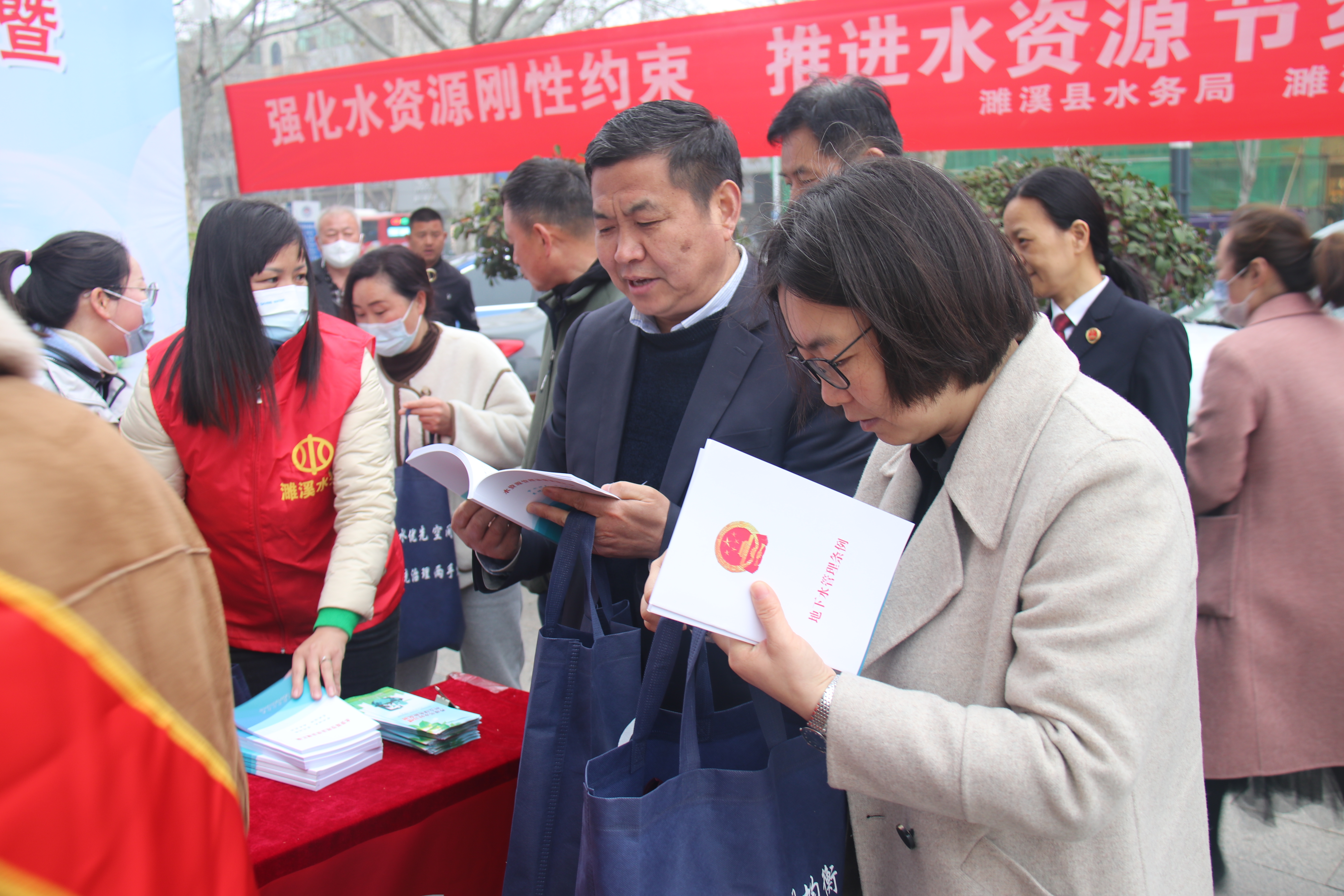 活动主会场设立了水法律法规宣传咨询台,工作人员向现场群众分发《水法律法规摘编》《公民节约用水行为规范》《节水倡议书》等宣传资料2000余份,并向群众宣传、讲解水法、水安全等方面知识,活动现场气氛热烈,县委常委、宣传部长张华,副县长李影来到活动现场,与群众热切交流。