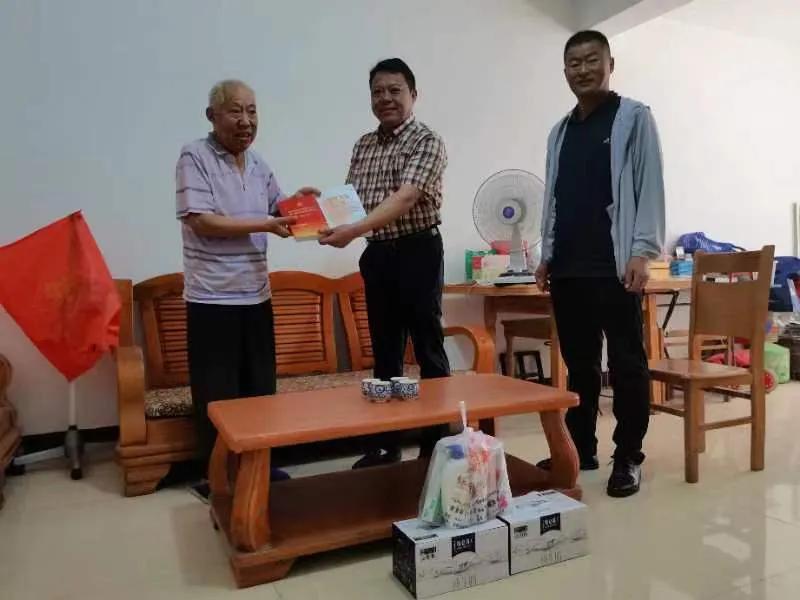 盛夏七月,烈日炎炎。为提高我县军休干部的归属感和幸福感,提高军休服务质量。近日,县退役军人事务局党组书记、局长秦辉,党组成员、副局长沈建带领军休站工作人员先后来到段德亮、刑玉寿、宋维道等军休老干部家中,为他们送去政治书籍《百年大党》《中共中央关于党的百年奋斗重大成就和历史经验的决议》以及牛奶和日常用品等物品,并嘱咐他们天气炎热,尽量减少外出活动,保重身体。