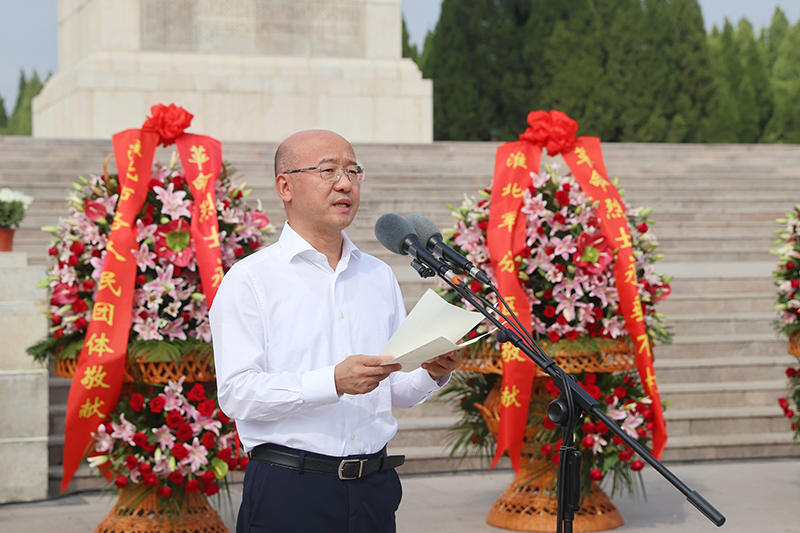 淮北是一片红色的热土,是一座英雄的城市。站在新的历史起点上,我们要继承先烈遗志,紧跟先辈脚步,学习他们忠于理想、勇于献身、甘于奉献的崇高信念,永葆革命激情,继续发扬淮海战役“小推车”精神,忠诚尽职、奋勇争先,为推动更高质量转型发展而努力奋斗,以优异成绩告慰先烈、缅怀先烈!