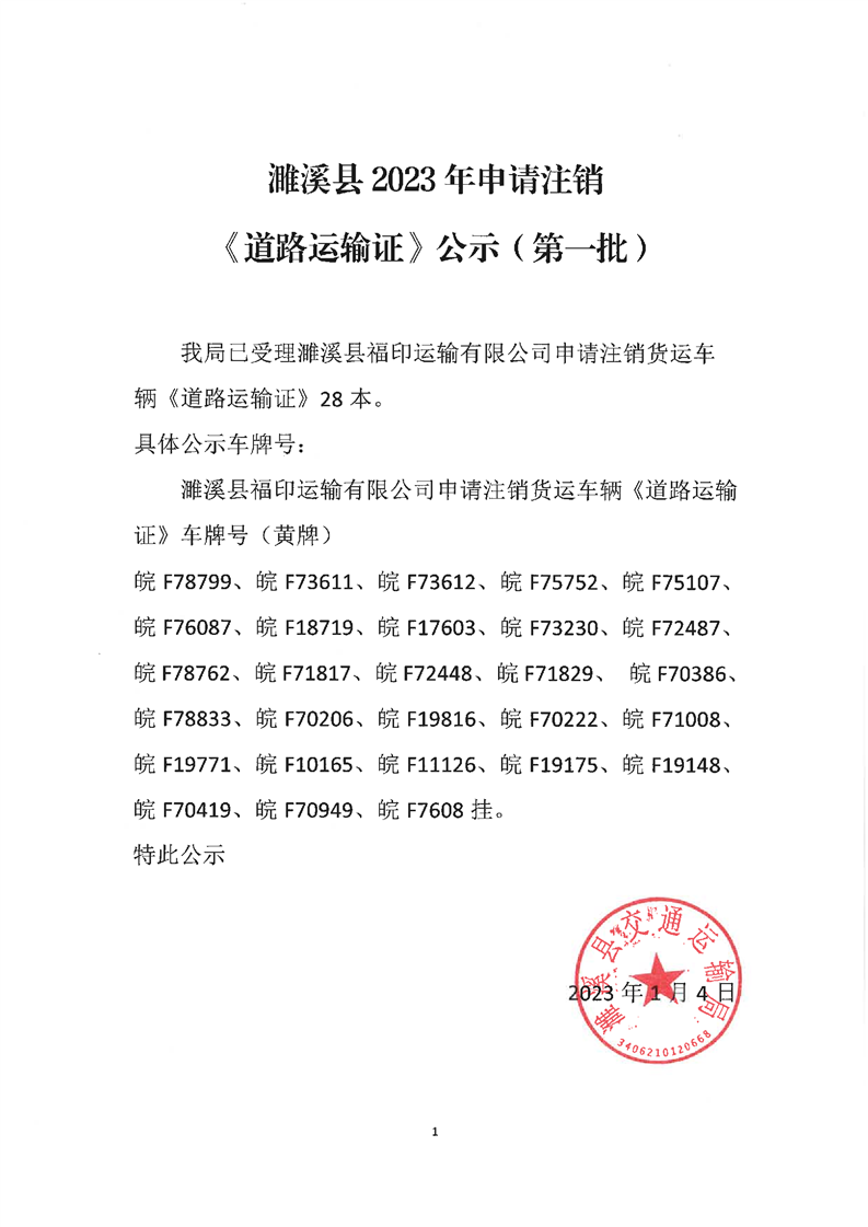 beat365手机版官方网站正规_365天电影观看免费_365平台怎么注册2023年申请注销《道路运输证》公示(第一批)