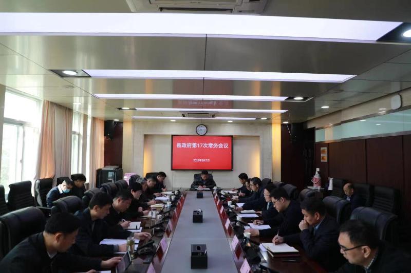 3月7日,县委副书记、县长孙进主持召开县政府第17次常务会议。县委常委、常务副县长王永涛,县委常委、副县长张磊,副县长马明、李影、鲍锐、钱程、陆松平,县政府经济顾问沈振宇,县政府办主任张亚斌出席会议。县人大常委会副主任吴飞、县政协副主席柳洁坤应邀参加会议。县监察委、县委办(督查考核办)、县财政局及县政府有关部门负责同志参加会议。