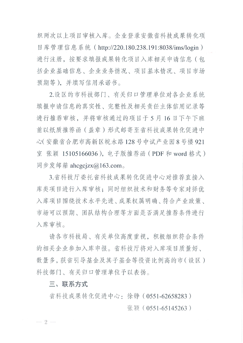 关于开展2022年安徽省科技成果转化引导基金项目库第一批项目入库推荐工作的通知