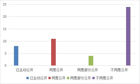 2018年,全县共收到网上依申请公开27件,纸质版依申请公开20件,已全部办结。其中已主动公开8件,同意公开11件,同意部分公开4件, 非本部门掌握、申请内容不明确、信息不存在等其他情况24件。